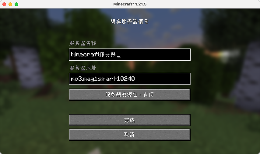 回到主页,启动游戏,进入多人游戏-添加服务器